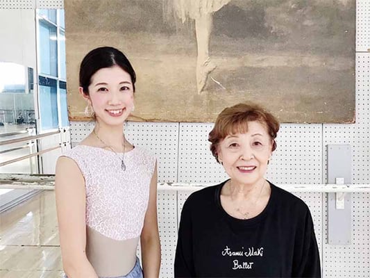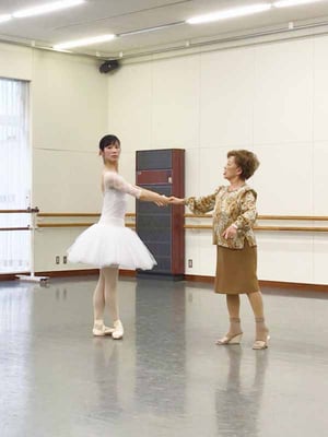 小学3年生で橘バレエ学校に入学して、初めて阿佐美先生にお会いしたのは学校公演の照明合わせの時でした。滅多にお目にかかる事の出来ない先生が目の前にいらっしゃり、物凄く嬉しかった記憶があります。高等科にもなり、当時は通常レッスン時に阿佐美先生がサプライズでご指導下さる事が多々ありました。今思うと最高に恵まれていたと感じます。その際に磨りガラス扉越しに定番の姿(赤いTシャツと白のヒール)が見えた時のスタジオ内のざわめきと緊張感は今でも鮮明に覚えてます(笑)